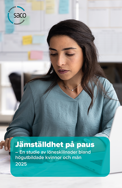 För att belysa och följa utvecklingen av den ekonomiska jämställdheten publicerar Saco återkommande rapporter om löneskillnader mellan högutbildade kvinnor och män. I november 2025 publicerade Saco rapporten Jämställdhet på paus. Rapporten visar att lönegapet mellan högutbildade kvinnor och män uppgår till 16 procent.
